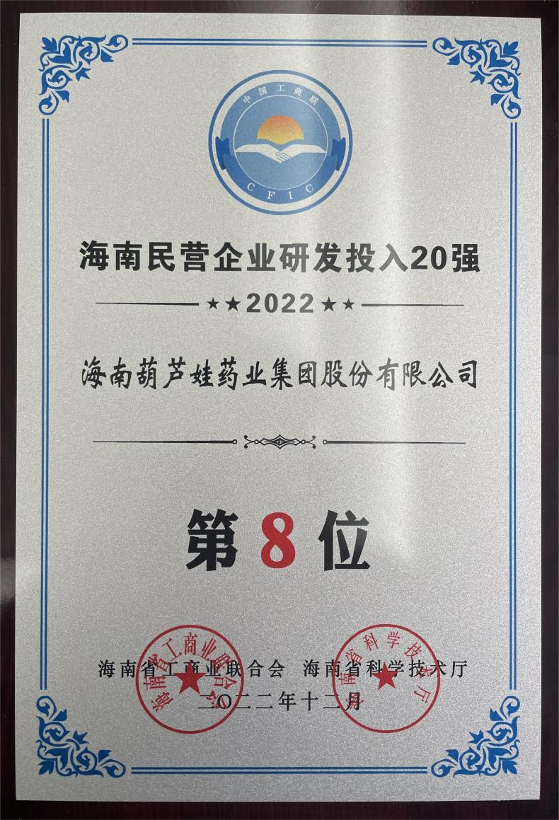 12月23日,2022海南民营企业50强和研发投入20强发布会在海口举行。会上发布了“2022海南民营企业50强”“2022海南民营企业研发投入20强”榜单和分析报告。918博天堂药业再次荣登两榜,在海南民营企业50强榜单中位列第25位,较去年上升8位,这也是公司连续三年登榜;在海南民营企业研发投入20强中位列第8位,较去年上升7位。